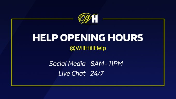 William Hill live chat. 0930 2130 Sat. For the quickest response please chat or send us a text. For the quickest response please chat or send us a text.